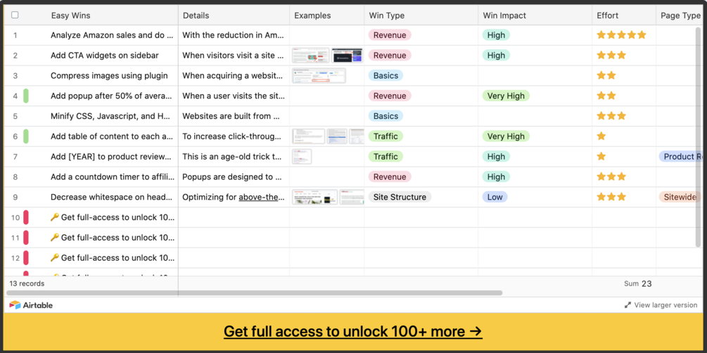 Database of proven Easy Wins to 10X Your Content Website Income and Traffic